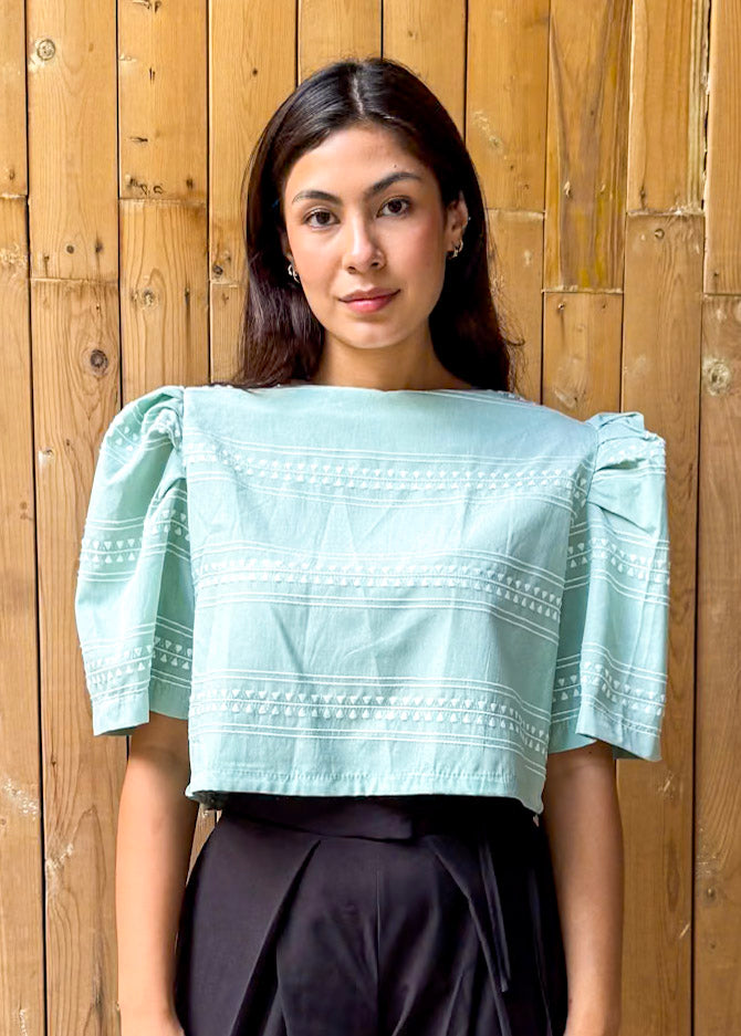 This Filipiniana blouse is a must-have for anyone who wants to add a touch of elegance to their wardrobe. It is perfect for formal events, such as weddings, graduations, and other special occasions. The puff sleeves and embroidered fabric make it a unique and stylish piece that is sure to turn heads.